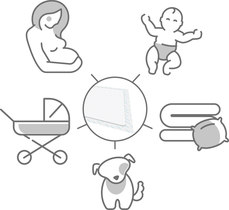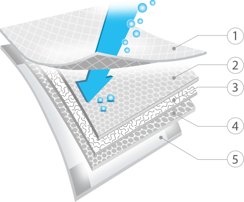 Superabsorpční materiál uvnitř podložky váže vlhkost rychle a neutralizuje jakékoliv nepříjemné pachy.