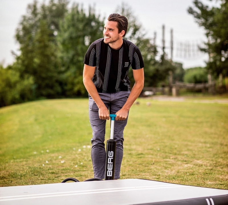 BERG AirTracks jsou vždy dodávány s praktickou vzduchovou pumpou. AirTrack lze nafouknout během krátké doby (cca 15 minut) a použít kdekoli chcete, takže je to jednoduché i na dovolené nebo na výletě k jezeru ke koupání. Po použití pumpa vysaje veškerý vzduch z AirTrack a zabere velmi málo místa.