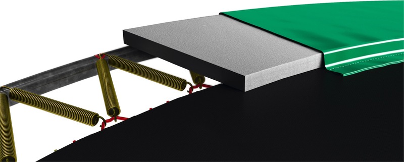 Nový systém šikmého upevnění pružin vytváří velkou elastickou plochu, která poskytuje vynikající odrazové vlastnosti a zvyšuje celkový komfort skákání.