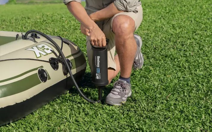 Praktické příslušenství: Součástí balení jsou kvalitní vesla, pumpa a přenosná taška pro jednoduchou manipulaci.