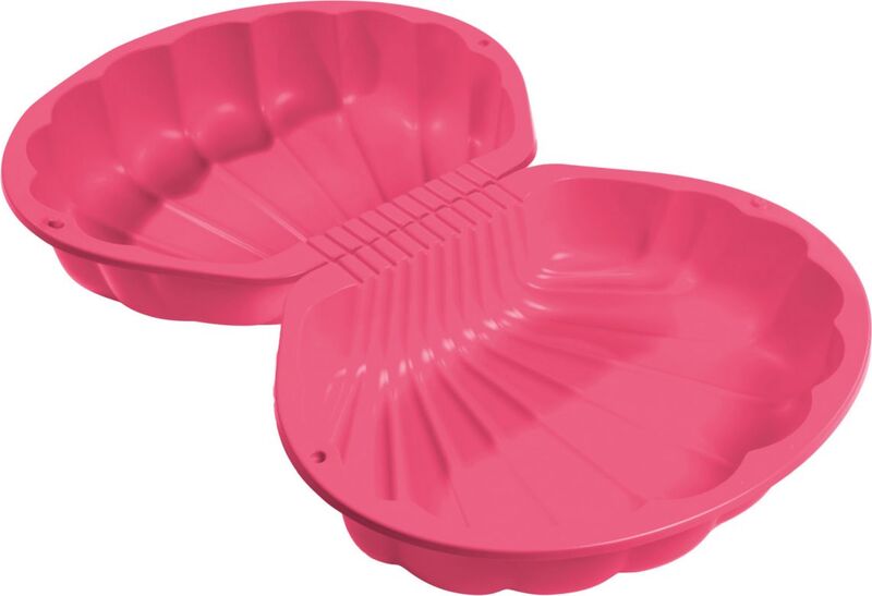 Pískoviště a bazének v jednom, složené ze 2 dílů s možností uzavření, z velmi kvalitního a pevného plastu. Barva růžová. Kapacita pískoviště 100 litrů. Pro písek cca. 15 - 20 kg na jednu polovinu skořápky a 40 litrů objem vody pro naplnění do výšky asi 9 cm. Rozměry výrobku 88 x 73 x 22 cm. Hmotnost 1,7 kg.