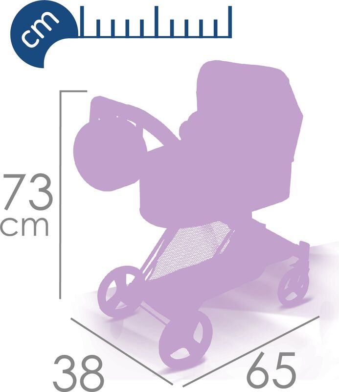 • Rozměry kočárku: 65 × 38 × 73 cm (výška k rukojeti)