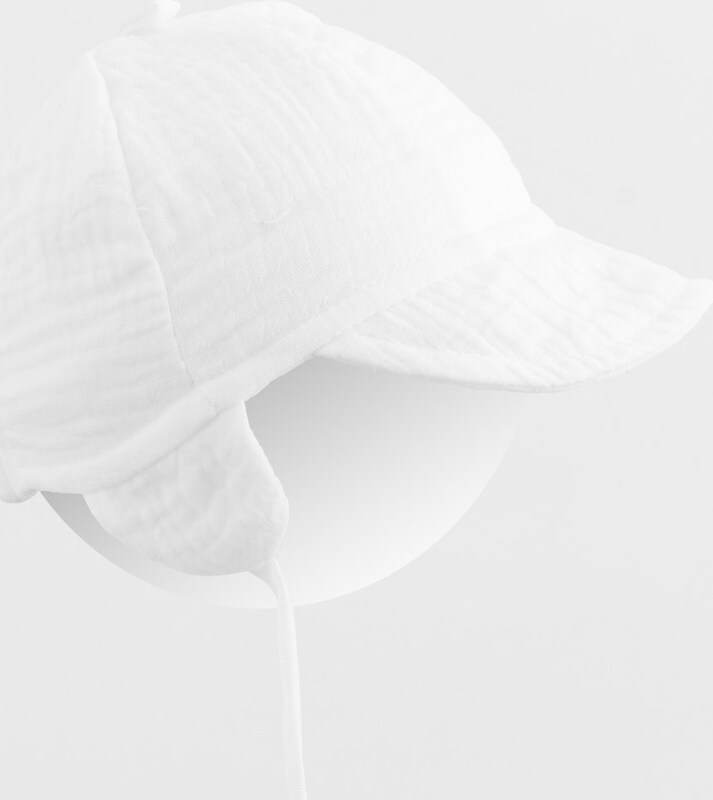 Letní mušelínová čepička s kšiltem New Baby. Čepička ochrání hlavičku před prudkým sluncem a díky kšiltu, který udělá stín, nespálí tvářičku a chrání oči dítěte před sluncem. Je krásně tvarovaná na uška, zavazuje se na šňůrky, netlačí a bude dobře držet na hlavičce miminka.