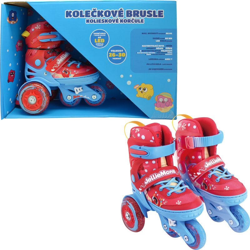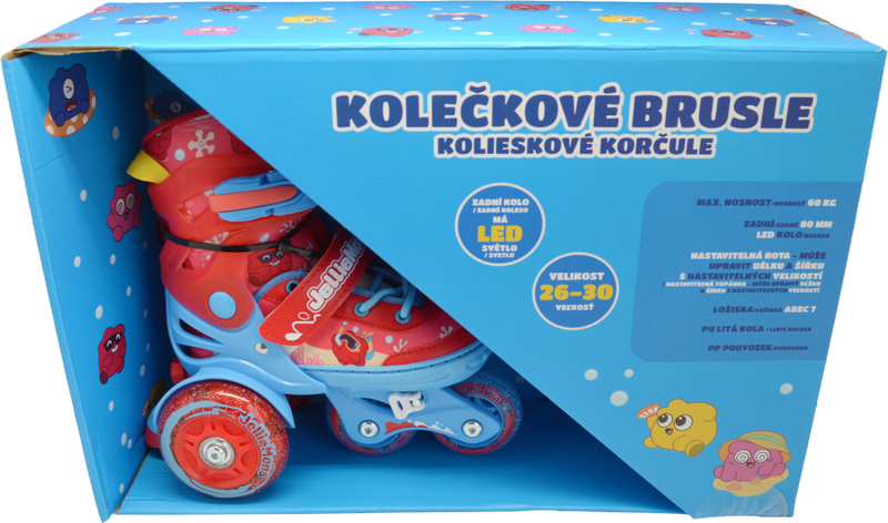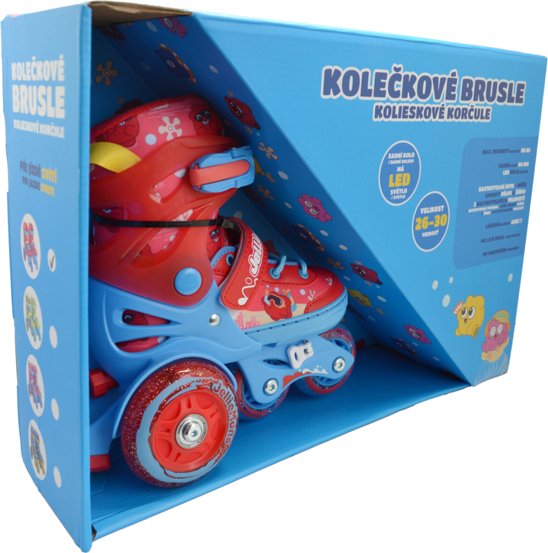 V balení najdete pár bruslí, které jsou vyrobeny z kvalitního plastu, což zaručuje jejich odolnost a bezpečnost. Červená barva a LED osvětlení přitahují pozornost a dělají z bruslí skvělého společníka pro každé dítě, které se nebojí pohybu.