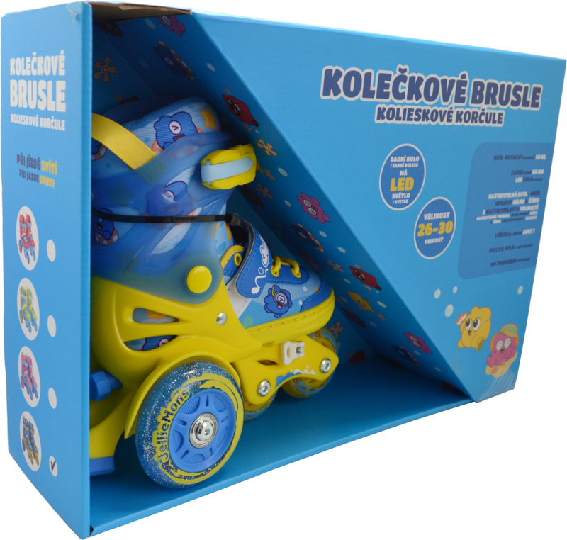 Brusle jsou navrženy pro děti ve velikosti od 26 do 30, což je ideální pro malé začínající bruslaře. Díky pevnému a lehkému plastovému materiálu se snadno ovládají, což zaručuje bezpečné a pohodlné používání. Svítící prvky doplňují trendy vzhled, zatímco děti si mohou užívat zábavu na kolečkách i za tmy.