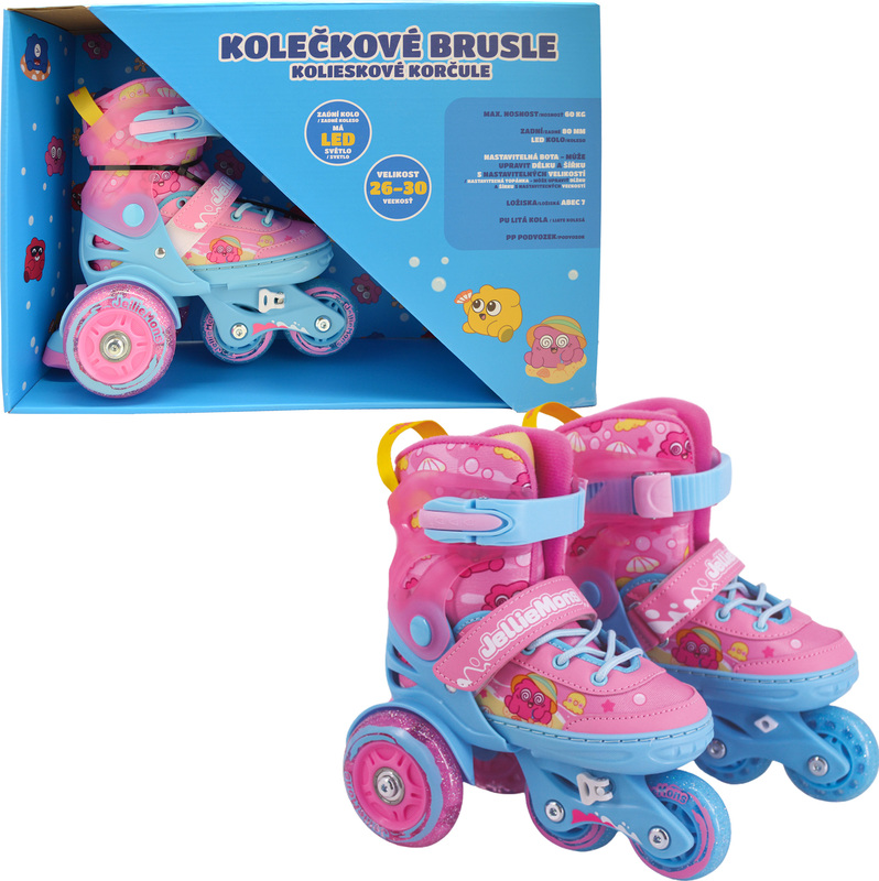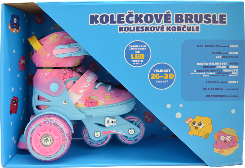 V balení najdete kompletní pár kolečkových bruslí v růžovém provedení. Vysoká kvalita použitých plastů zajišťuje dlouhou životnost a bezpečnost během hraní.