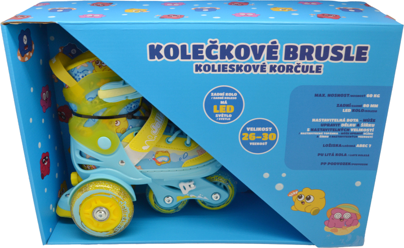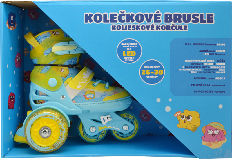 V balení najdete pár kvalitních kolečkových bruslí vyrobených z bezpečného a odolného plastu, které splňují všechny standardy pro dětské hračky. Design je nejen atraktivní, ale také praktický, což zaručuje pohodlné nošení.