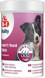 Pivovarské kvasnice 8in1 Brewers Yeast tablety jsou ideálním denním doplňkem stravy, který pomáhá podporovat zdravou kůži a lesklou srst. Kombinace pivovarských kvasnic, vitamínů skupiny B, česneku, rybího oleje a vyvážených minerálů zajišťuje vašemu psovi správnou výživu pro zdravou kůži a srst. Pro zdravou a lesklou srst. S omega-3 mastnými kyselinami. Bohaté na vitamíny skupiny B a minerály. S přírodními antioxidanty. Bez umělých barviv a konzervantů. Vyvinuto s veterináři. Složení: Kvasnice (pivovarské kvasnice 87?%), oleje a tuky (včetně rybího oleje 0,8?%), deriváty rostlinného původu, zelenina (česnekový prášek 1,2?%), minerály. Analytické složky: Bílkoviny 42?%, obsah tuku 8,5?%, omega-3 mastné kyseliny 0,12?%, hrubá vláknina 1?%, hrubý popel 9?%, vlhkost 8?%. Doplňkové látky (na kg): Vitamíny: Vitamín B1 (900?mg), vitamín B2 (4800?mg), vitamín B6 (59?mg), Biotin (2000?µg), Niacinamid (1200?mg). Stopové prvky: Železo (uhličitan železnatý) 1914?mg, zinek (oxid zinečnatý) 3270?mg, měď (síran měďnatý pentahydrát) 2,5?mg, mangan (síran manganatý monohydrát) 323?mg.   Vše, co potřebujete vědět o Pivovarských kvasnicích 8in1 Vitality Brewer’s Yeast Na co slouží 8in1 Vitality Brewers Yeast? 8in1 Vitality Brewers Yeast je denní doplněk, který podporuje zdraví kůže a srsti vašeho psa. Obsahuje klíčové složky jako vitamíny skupiny B (B1, B2, B6, biotin), rybí olej (pro omega-3) a minerály (zinek, železo). Tyto složky společně podporují zdravou srst a kůži. Jaké jsou klíčové složky tohoto doplňku? Pivovarské kvasnice (87?%) Oleje z světlice barvířské a rybí olej (0,8?%) Česnek (1,2?%) Vitamíny skupiny B (např. B1, B2, B6, biotin) Minerály: zinek, železo, mangan Jaké jsou přínosy těchto vitamínů a minerálů? Vitamíny B-komplexu podporují metabolismus a zdraví kůže. Zinek posiluje kožní bariéru. Měď pomáhá udržovat přirozenou barvu srsti. Mangan podporuje růst buněk a zpracování tuků. Tato živiny společně udržují kůži a srst psa zdravou. Je produkt bezpečný na denní používání? Ano, 8in1 Vitality Brewers Yeast byl vyvinut ve spolupráci s veterináři jako denní doplněk. Jelikož však obsahuje vyšší hladiny některých stopových prvků (zinek, železo, mangan), neměl by tvořit více než 7,6?% denního příjmu potravy vašeho psa.