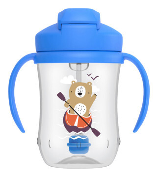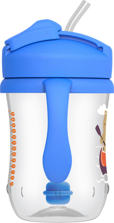 Hrnek s měkkou silikonovou brčkem umožňuje snadný přechod pití z lahve na pití z hrnku.