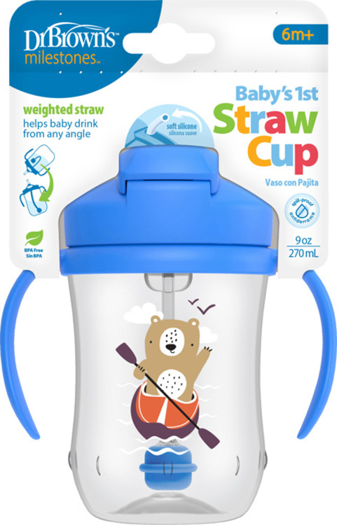 Dr. Brown’s Hrnek se slámkou 270 ml s držadly 6 M+ modrý (TC91102)