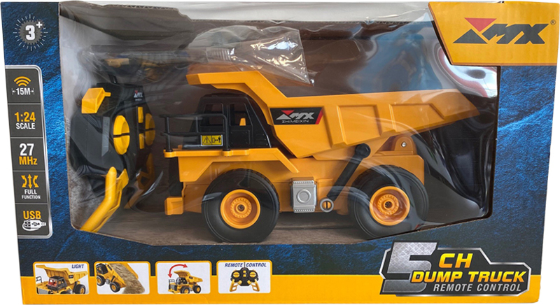 - Funkční korba: Korba sklápěčky se dá zvednout a sklonit pomocí dálkového ovládání, což umožňuje nakládat a vykládat různé předměty.