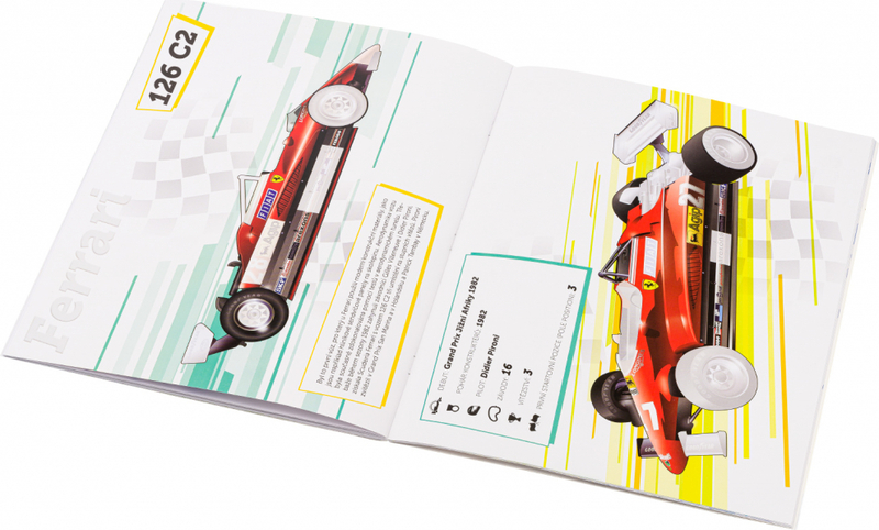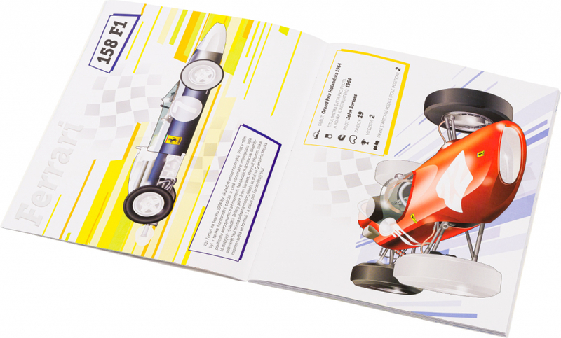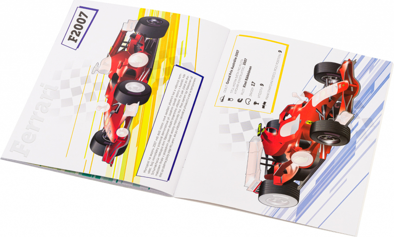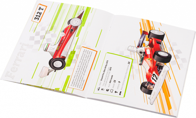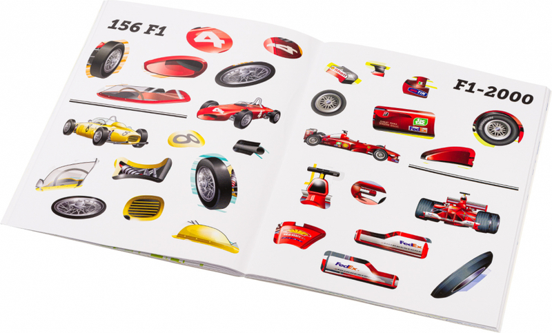 Objavte ohromující rychlost závodních vozů stáje Scuderia Ferrari a užijte si plno zábavy s doplňováním atraktivních modelů slavné značky samolepkami. Kromě zábavy vás čeká také množství zajímavých informací o těchto úžasných zářících strojích a jejich technických parametrech.