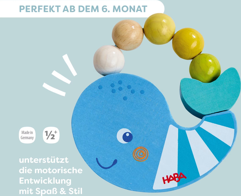 Haba Chrastítko a úchopová hračka Velryba