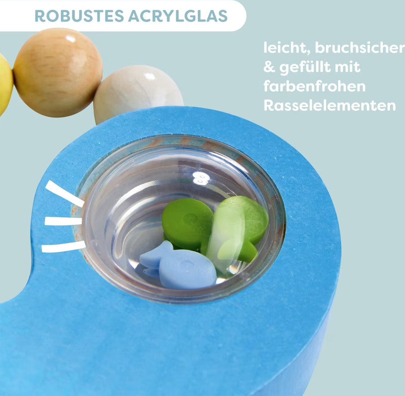 Vyrobeno z kvalitního přírodního dřeva, spojuje poutavý design s jemným zvukem hrkálky.