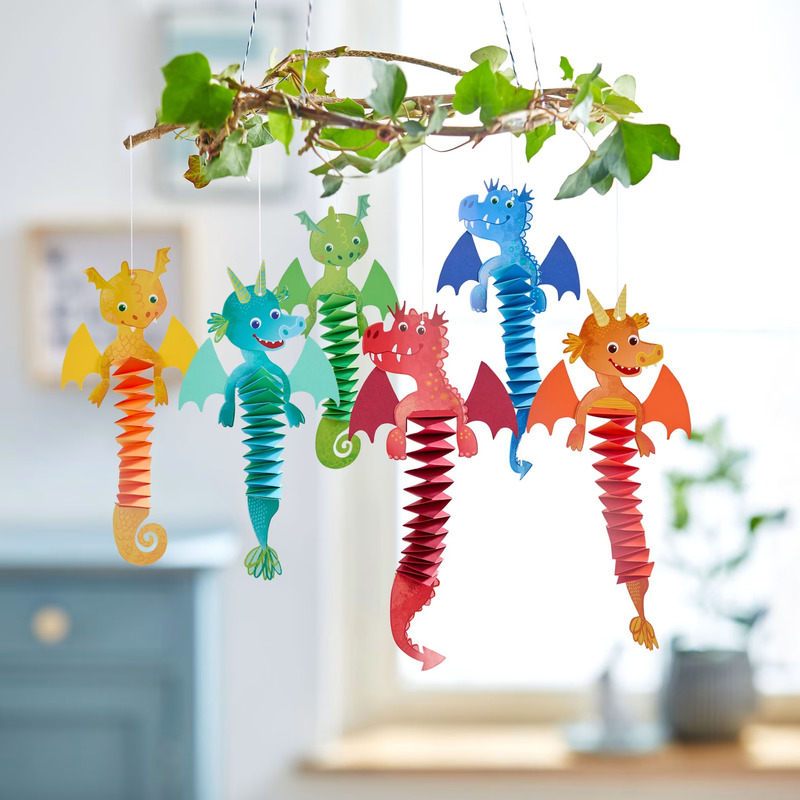 Ohniví draci – kreativní sada pro malé tvůrce přináší dětem zábavný projekt, při kterém poskládají 6 ohnivých skládaných draků.