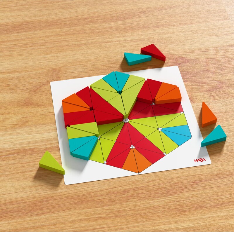 Geometrické vzory s trojúhelníky představují první zkušenost s geometrickým ukládáním vzorů pro děti.