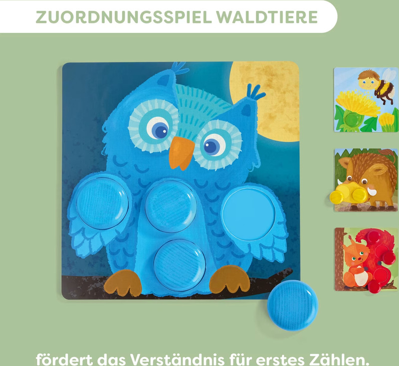 Při hře si děti přirozeně trénují koordinaci oko-ruka, jemnou motoriku a získávají první zkušenosti s počítáním podle principu „spočítat + přiřadit = učit se“.