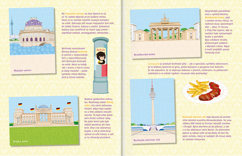 Oblíbená série Minimiki přichází s dalším novinkou v podobě zábavné samolepící knihy, ve které budou děti společně s panenkou Hannou a jejími kamarádkami Else a Steffi objevovat nejznámější kouty německého hlavního města Berlína, jednoho z nejkrásnějších evropských metropolí. Známé berlínské scény mohou doplňovat množstvím krásných samolepek podle vlastní fantazie a v knize najdou nejen mnoho zajímavých informací o tamních památkách, ale také například o historii tohoto města.