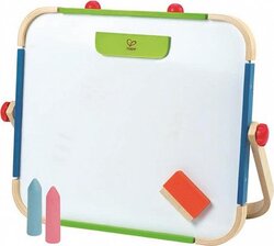 S touto velkou oboustrannou tabulí je možné snadno rozvíjet kreativní umělecké dovednosti dětí. Z jedné strany magnetická tabule se suchým stíráním fixů, z druhé strany tradiční tabule pro křídu. Součástí je rolka papíru, fix, křída a plstěná houba. Tabule je vybavena velkým odkládacím či úložným prostorem. Tato dřevěná, oboustranná, multifunkční nástěnka se určitě stane nepostradatelným společníkem vašeho dítěte.
