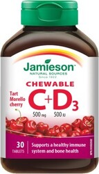 Jamieson Vitamíny C a D3 500 mg/500 IU tablety na cucání s příchutí třešně 30 tablet