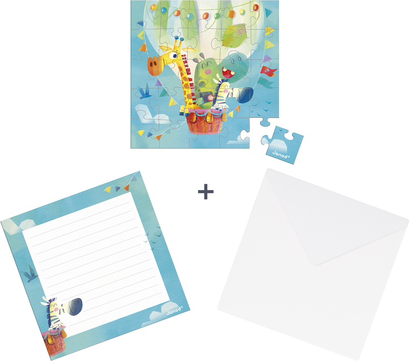 Janod Blahopřání k narozeninám s puzzle Leť balónem