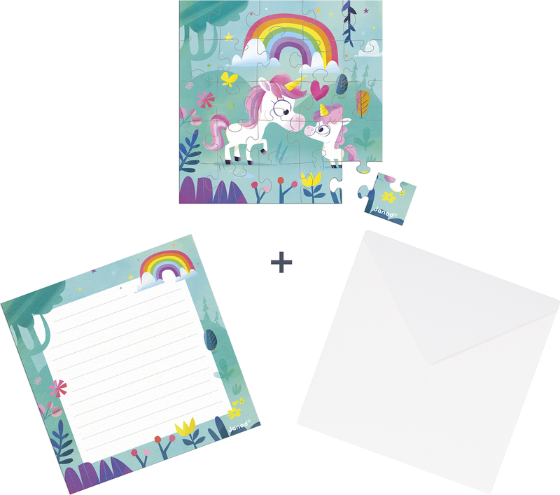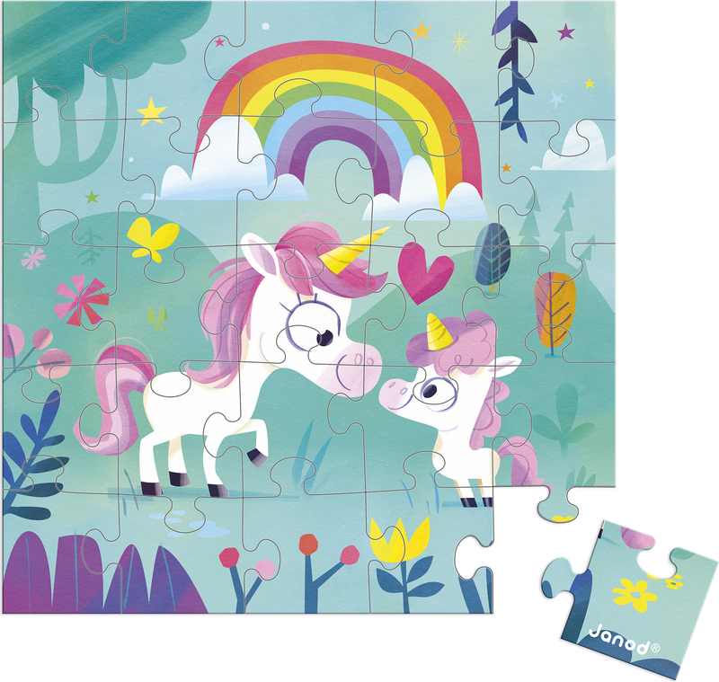 Janod Blahopřání k narozeninám s puzzle Máma a miminko Jednorožec