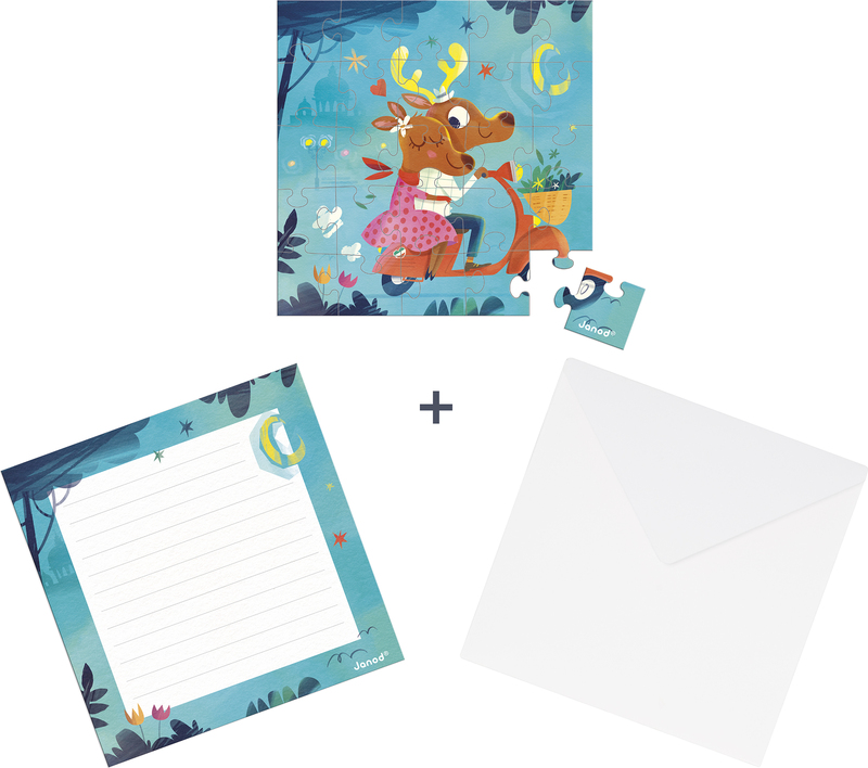 • Napište milý vzkaz nebo vytvořte pěkný obrázek na linkovanou kartu a poté ji spolu s puzzlem vložte do přiložené obálky.