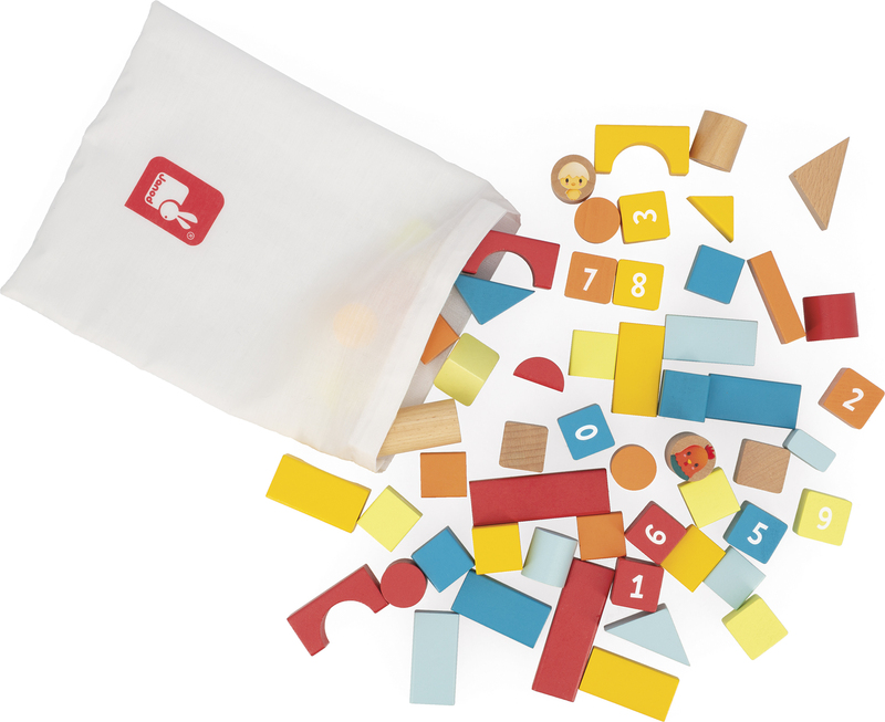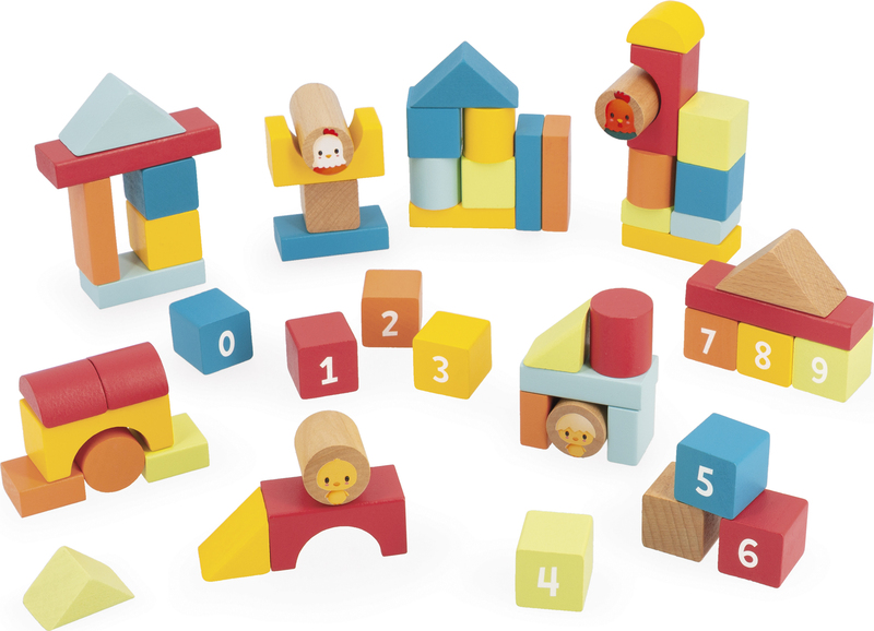 Kostičky jsou očíslovány od 0 do 9, což pomáhá starším dětem naučit se počítat. Dřevěná hračka FSCTM.