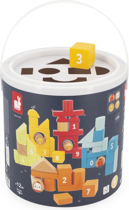 Janod Farma Sada dřevěných kostek v praktickém soudku 56 ks