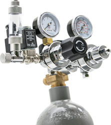 - Redukčný ventil - hlavný dvojstupňový redukčný ventil s dvoma manometrami. Je pripojený k fľaši CO2 a dodáva sa vo verzii W21.8.