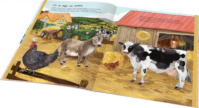 Vydejte se na dobrodružnou výpravu za zvířaty, která nazýváme hospodářská - to jsou ta, která lidé již tisíce let chovají kvůli nějakému užitku. Na farmě jich najdete hodně a hodně druhů! Liší se nejen podobou, ale i velikostí a nám, lidem, slouží různými způsoby. S knížkou plnou samolepek navštívíte stáj, kurník, výběh, pole, louky, sad a rybník - všude tam najdete hospodářská zvířátka, ale i celou řadu dalších tvorů, kteří jim dělají společnost. V této knize se o nich dozvíte množství zajímavostí a navíc zažijete plno zábavy při dotváření 11 krásných scenerií pomocí roztomilých samolepek. Tak už na nic nečekejte a pusťte se do nalepování!- Počet listů 12