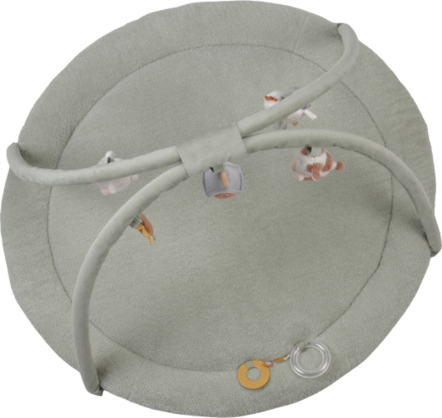 Měkká hrací deka s hrazdičkou, na které jsou zavěšeny hračky v podobě zvířátek a motivů ze života na farmě. Při zkoumání hraček upoutá pozornost miminka chrastění, šustění, pískání a zvonění.