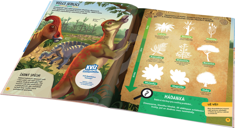 Vydejte se na dobrodružnou misi s krycím názvem DINOSAURY! Akademie záhad, která řeší hádanky staré stovky, tisíce, ba milióny let, má pro vás pořádnou výzvu. Vědci objevili tajemné vejce, které podle prvních výsledků výzkumu patřilo některému z ohromujících prehistorických tvorů - dinosaurů. Pokračujte v paleontologickém průzkumu, identifikujte stopy zanechané pravěkými tvory, sbírejte indície... Jen pokud se úspěšně vypořádáte se všemi rébusy, kvízy a úkoly, zjistíte, komu patřilo nalezené vejce! Při řešení úkolů se dozvíte mnoho zajímavých informací a zajímavostí z historie. Pomohou vám také samolepky, kterých tu najdete přes 250!