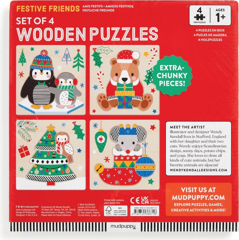 Mudpuppy Dřevěné vánoční puzzle sada 4 puzzle