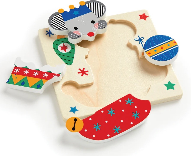 Dřevěná puzzle pro malé děti pomáhají rozvíjet motorické schopnosti, kognitivní schopnosti, jazyk a paměť. Ideální první dřevěné puzzle pro nejmenší. Robustní vkládací puzzle s velkými dílky ve vánočním designu. Skvělý způsob procvičení jemné motoriky, logického myšlení a poznávání tvarů a barev. Toto dřevěné puzzle pro batolata je dodáváno s hladkou dřevěnou základní deskou s malovanou scénou. Batolata mohou také procvičovat počítání dílků skládačky.