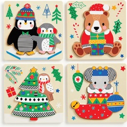 Sada 4 dřevěných puzzle s motivy Vánoc.