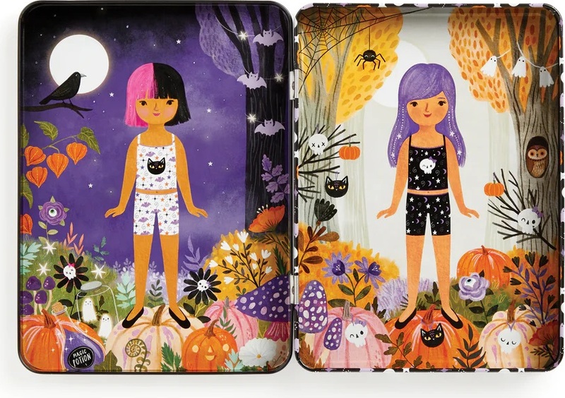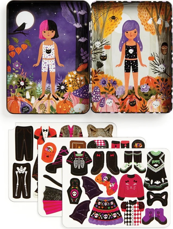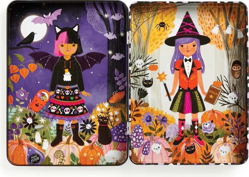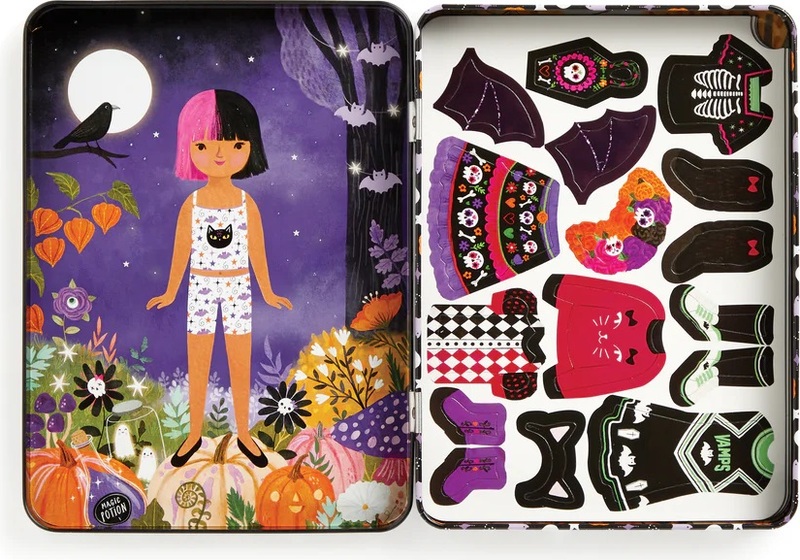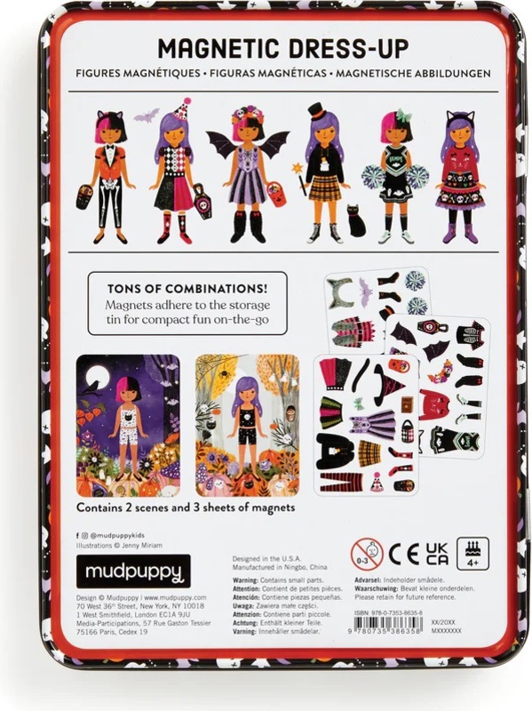Hra obsahuje 2 ilustrované scény na pozadí, v každé části je jedna slečna, která čeká na své strašidelné oblečení. K dispozici je na 3 kartách více než 45 magnetů s tematickým oblečením a doplňky. Kombinujte všechno podle svých vlastních představ. Vhodné na doma i na cesty.