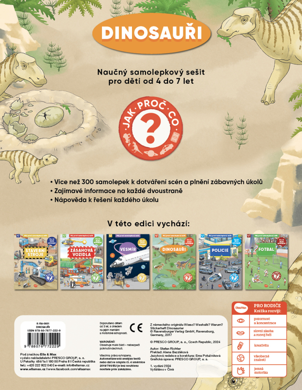 V této velké samolepkové knížce najdete odpovědi na všechny zvídavé otázky týkající se dinosaurů, více než 300 samolepek na dotváření scén a plnění zábavných úloh na každé dvojstraně.