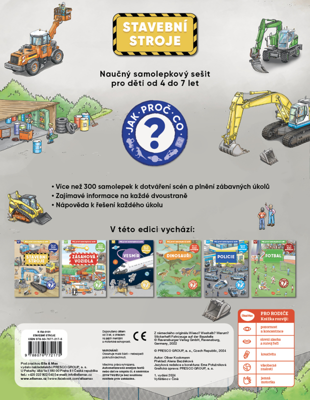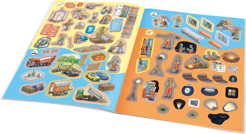 V této velké samolepkové knížce najdete odpovědi na všechny zvídavé otázky týkající se stavebních strojů, více než 300 samolepek na dotváření scén a plnění zábavných úkolů na každé dvojstraně.