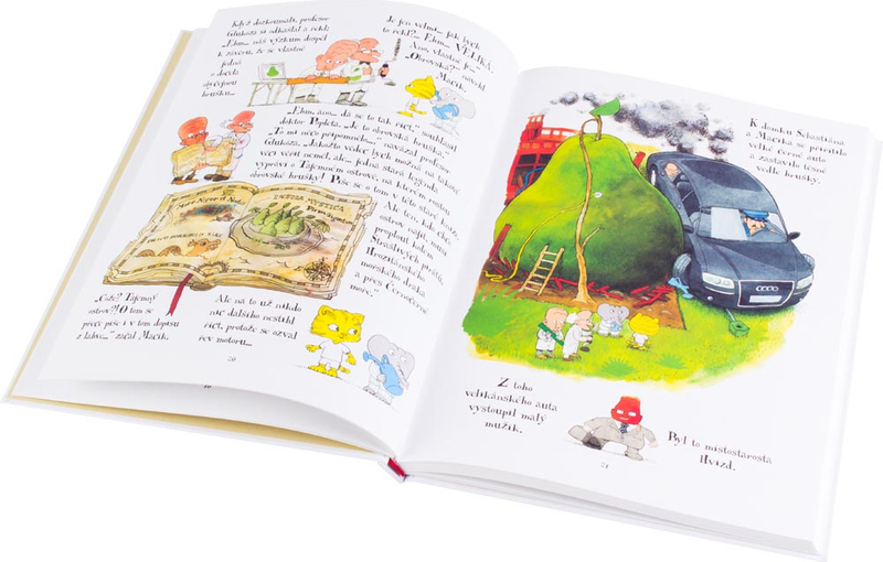 Kočičí Miško a slon Sebastián z přímořského městečka Sluníčkov nevěří vlastním očím. Na jejich zahradě v noci vyrostla obrovská hruška. Skutečný zázrak přírody! Zázrak, až na to, že jim téměř shodila domeček. S hruškou se nedá ani hnout, je neuvěřitelně těžká. Co s ní? „To je nápad – vydlabeme vnitřek a odvezeme ji,“ rozhodli se Miško s Sebastiánem a přáteli. Přívěs s hruškou se ale nešťastnou náhodou dává do pohybu. Nejprve pomalu, potom rychleji a rychleji z kopce dolů, a .čľup! – s obrovským čľapotom končí hruška v moři i s Miškem, Sebastiánem a profesorem Glukózom na palubě. A zde začíná Miškova a Sebastiánova neuvěřitelná cesta za tajemným ostrovem, cesta plná dobrodružství.