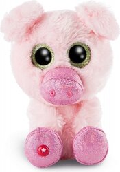 - Prasátko Zuzumi přichází v klasickém růžovém tónu, má nos z růžového třpytivého materiálu a nádherné zelené lemované třpytivé oči.
