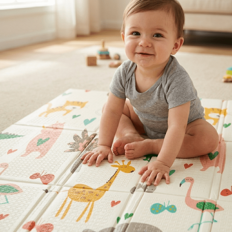 Vyrobena z vysokokvalitního netoxického materiálu XPE, podložka spolehlivě izoluje, odhlučuje a chrání miminko před chladem a nečistotami.