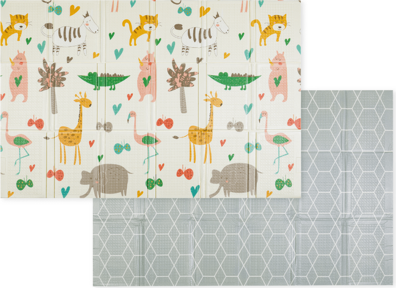 Podložka je oboustranně potištěná veselými motivy a díky své lehké a jednoduché skládací konstrukci je ideálním společníkem doma i venku. Součástí produktu je praktická přenosná taška, do které se podložka jednoduše složí.