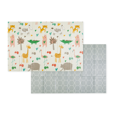 PETITE&MARS Podložka na hraní skládací Campy L 130x200cm Animals&Hexagon