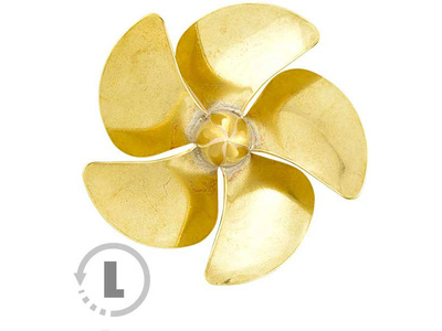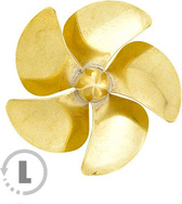 Raboesch lodní šroub tř.168 5-listý, průměr 20mm, směr otáčení levý, montáž na hřídel se závitem M4, materiál mosaz pájená stříbrem.