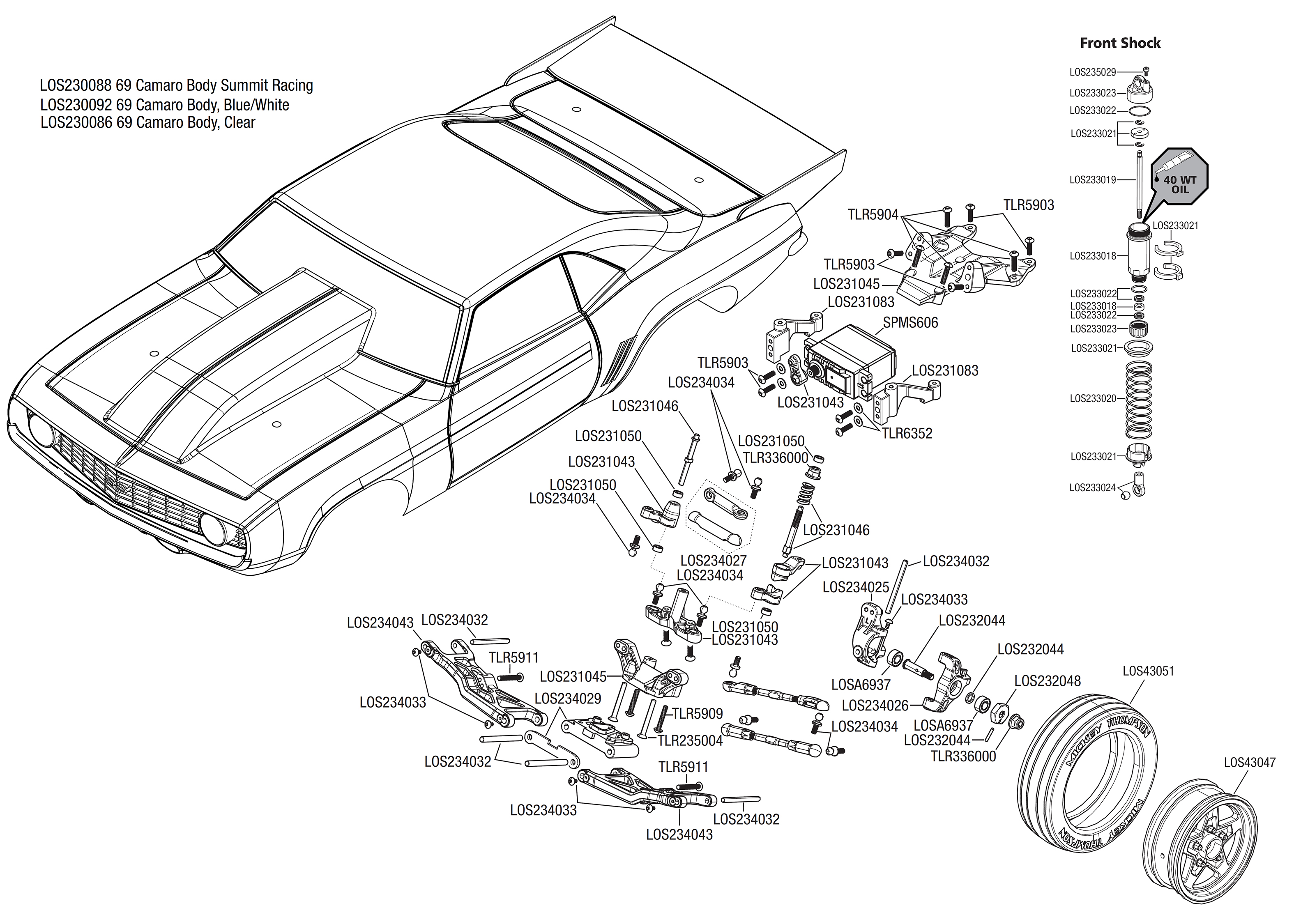 Pro produkt Losi 22S Dragster 1:10 1969 Camaro RTR modré