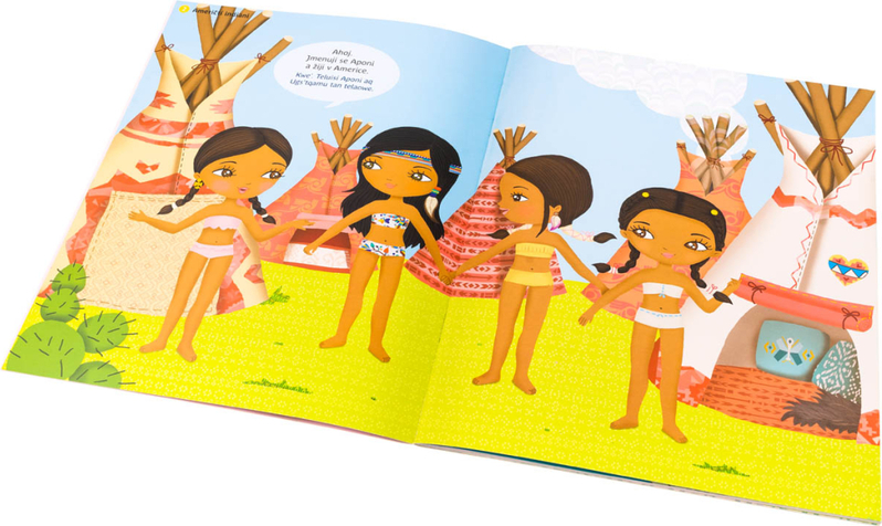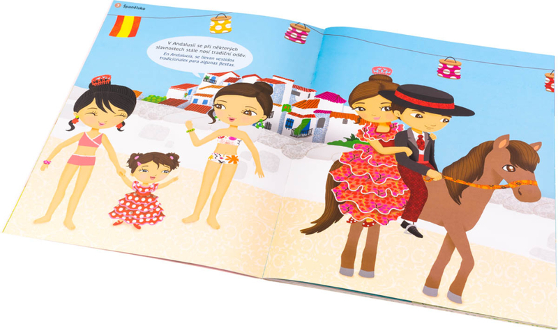 Tato série představuje nejmenší tahitskou, španělskou, indiánskou nebo eskymáckou kulturu. Děti zábavnou formou získají a upřesní si své představy o cizích zemích a jejich obyvatelích. V každé knize objeví 300 samolepek a mnoho obrázků zkušené ilustrátorky a absolventky stylistiky Julie Camel, která svým postavičkám, jejich oblečení i kulisám vdechla autenticitu. Velkou zajímavostí jsou v neposlední řadě také dvojjazyčné texty v obrázcích, díky nimž bude pro malé čtenáře poznávání ještě zajímavější a komplexnější.Poznejte šaty z nejrůznějších koutů světa! Francouzské, indiánské, španělské, tahitské, americké, indické, ruské nebo japonské? Mezi tolika úžasnými šaty si určitě vyberete… Které se vám líbí nejvíce?
