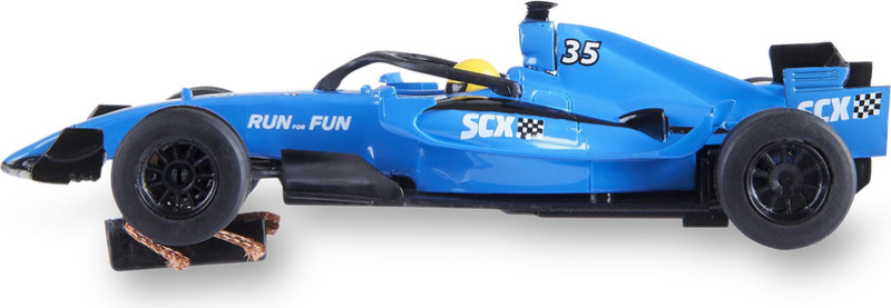 Dráhové autíčko SCX Compact F1 modrá/bílá v měřítku 1:43, pro autodráhy SCX Compact.