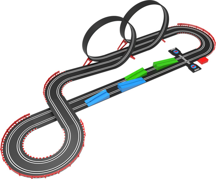 Elektrická autodráha je vybavena díly na stavbu dvou loopingů, každý pro jednu dráhu. Před začátkem loopingu je nutné nabrat rychlost, aby autíčko bezpečně projelo loopingem i vzhůru nohama.