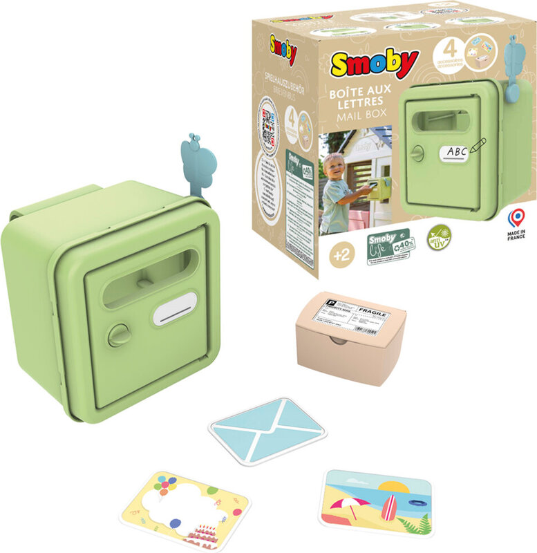 Poštovní schránka Smoby Life, vyrobená z minimálně 40 % recyklovaného plastu, barevně stabilní a s UV ochranou.
